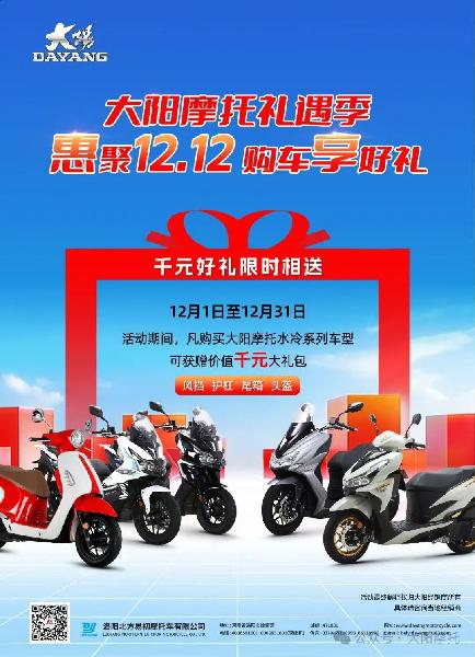 大陽(yáng)摩托禮遇季,惠聚雙12,購車(chē)享好禮!